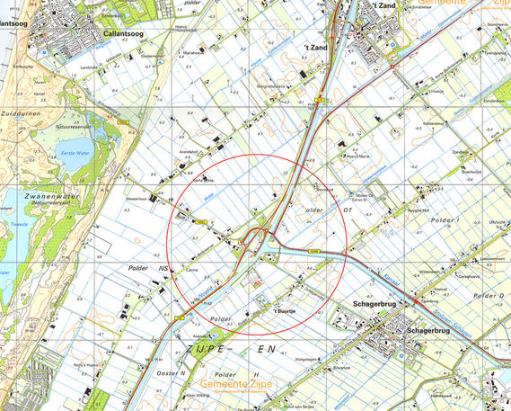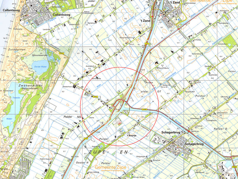 Om aan te sluiten bij het open polderlandschap van De Zijpe is de nieuwe N9 op maaiveldniveau met brede (obstakel vrije) grasbermen aangelegd. De aanlandingen van het viaduct over de N9 zijn als grasdijken uitgevoerd. Daartussen ligt een slank viaduct van talud naar talud. Om een zo open mogelijke blik onder het viaduct te krijgen, zijn de landhoofden rond uitgevoerd.