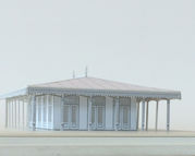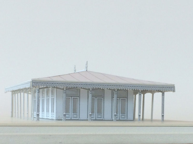 Die hal is het vertrekpunt voor het ontwerp van het nieuwe paviljoen. Een zes meter hoog klassiek gebouw met kenmerkende galerijen en een groot overstekend dak. Het paviljoen is alzijdig en heeft rondom openslaande deuren.