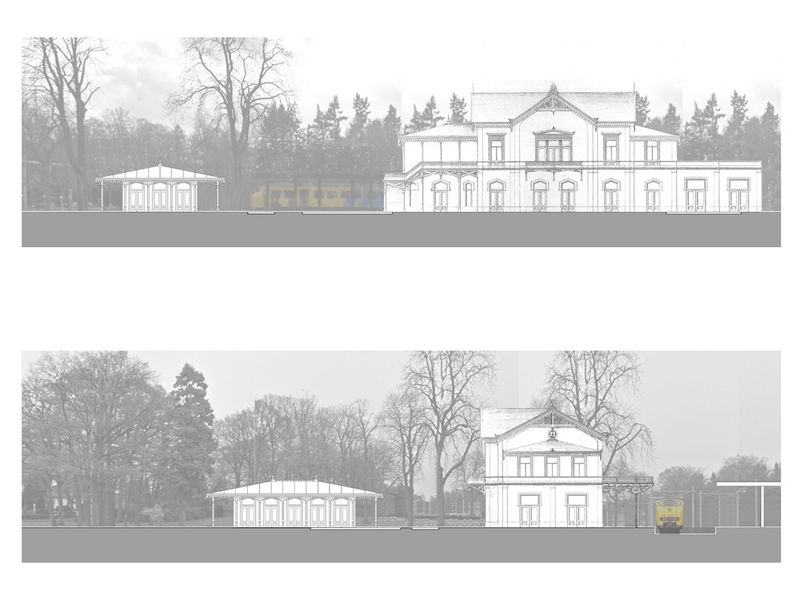 Het nieuwe paviljoen wordt aan het stationsplein gesitueerd met aan de zuidzijde een buitenterras met uitzicht op de aankomende en vertrekkende treinen. Aan de noord en oostzijde grenst het paviljoen aan het Amaliapark. Een nieuw padenstelsel verbindt het park met de omgeving.