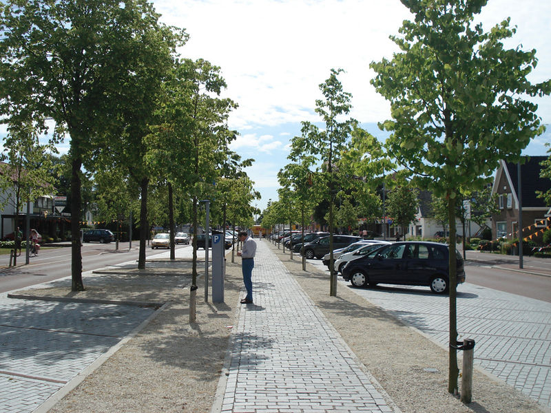 In het westelijke aanloopgebied is er in de middenzone ruimte voor parkeren. Het Lindelaantje geleedt het profiel en legt een verbinding met het centrumplein.