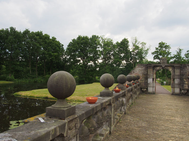 Het water verdeelt het park in drie gebieden met een eigen karakter; het sloteiland, de (uitgebreide) slottuin en de parkschil. Het sloteiland is uitgevoerd in gras en volgt de contouren van de bewaard gebleven oude (ondergrondse) fundamenten van het voormalige kasteel. De rand van het eiland is vormgegeven door bovenop de oude fundamenten graszoden te stapelen. De slottuin is uitgebreid met de aanleg van een boomgaard op het schiereiland. Met de vrijkomende grond uit de waterpartijen is het schiereiland een meter opgehoogd. De nieuwe elementen zoals de parkeerplaats en het trap- en speelveld liggen in de parkschil rond de slottuin. Het landschappelijke beeld wordt hier bepaald door bomen in het gras.