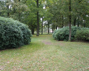 De voormalige boerderij van het landgoed, nu een woonhuis, wordt door een gemaaide tuin-as verbonden met de rhododendrontuin. Het tuingedeelte tussen de boerderij en het naastgelegen koetshuis, waarin kantoren zijn gevestigd, is ingericht met haagblokken, opgaande kersen, paden van gebakken klinkers en grind. Dit gedeelte van de tuin dient als pauzeplek voor de gebruikers van de kantoren. daarnaast bieden de hagen de bewoners van de voormalige boerderij privacy.