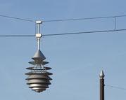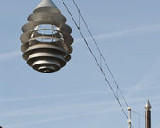 Boven het plein zijn een tiental kroonluchters gehangen. De armaturen zijn gebaseerd op de LP centrum, die door Poul Henningsen in de jaren vijftig is ontworpen. Op het van Stamplein wilde wij deze design klassieker voor binnen buiten toepassen. Vanuit deze eenvoudige gedachte begon een zoektocht hoe de lamp zo kon worden vormgegeven en uitgevoerd, dat deze voor het plein geschikt is. De lamp is 2x zo groot (1,8 hoog en 1,2 breed), in gepareld RVS (weerbestendig) uitgevoerd. De lampen wegen 50 kg per stuk. De armatuur bestaat uit 10 schermen (ringen) gemonteerd aan 4 ribben. De ribben bevatten de bedrading voor de lichtbron die zich onderin het armatuur bevindt. Het armatuur is uitgevoerd met een RGB led unit. Het armatuur kan in elke gewenste kleur worden aangelicht en zorgt voor een indirect licht op het plein. De lampen geven ’s avonds een feestelijke uitstraling (een hemel van lampionnen). Door de afmeting en de vorm vallen de armaturen ook overdag op en bepalen mede de gewenste intiemere sfeer van het plein. De armaturen zijn met kabels verbonden met de afspanmasten. De afspanmasten zijn in staal uitgevoerd en worden bekroond door RVS kegelvormige kop. De lampen zijn in samenwerking met Louis Poulson door Trimetaal in Franeker geproduceerd.