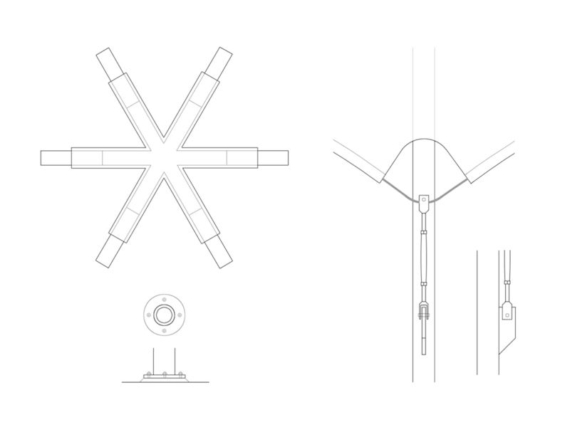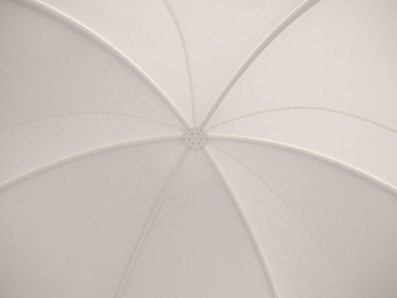 De basis van de overkapping wordt gevormd door een metalen frame (wit gecoat) dat is opgebouwd uit zes buizen die in de top met elkaar zijn verbonden. Het frame wordt overtrokken met wit – lichtdoorlatend- zeildoek (gecoat). Hierdoor ontstaat er een lichte koepel constructie die door de schaduw van de bomen op het doek constant van gedaante verandert en qua vorm aansluit op de omgeving en de Gaudi-bank.