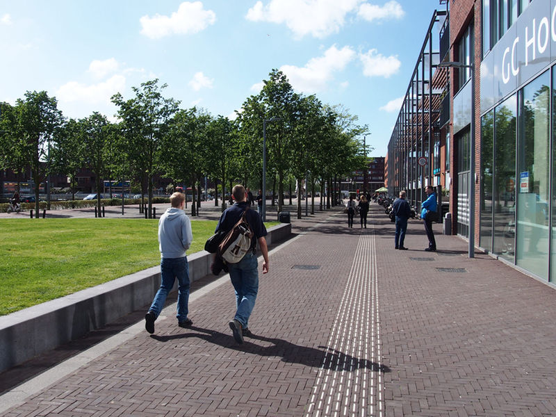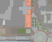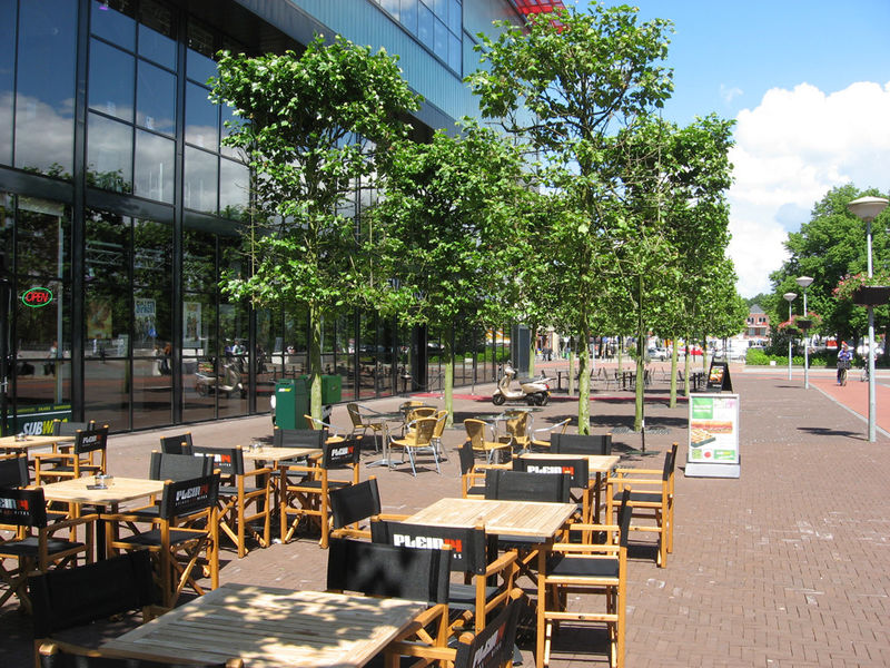 Aansluitend aan het bioscopencomplex is ruimte voor horeca terrassen. Om de verblijfskwaliteit van het plangebied en ruimtelijke relatie tussen de twee pleinen te vergroten zijn er bomen aangeplant; voor de bioscoop geschoren boomblokken (plataan) en langs de entree van de parkeergrage losgroeiende bomenrijen (plataan). De boomblokken zijn afgestemd op de gevelindeling van het Paradisocomplex (breedte en hoogte) en verbeteren het microklimaat (windluwte) van de doorgang.