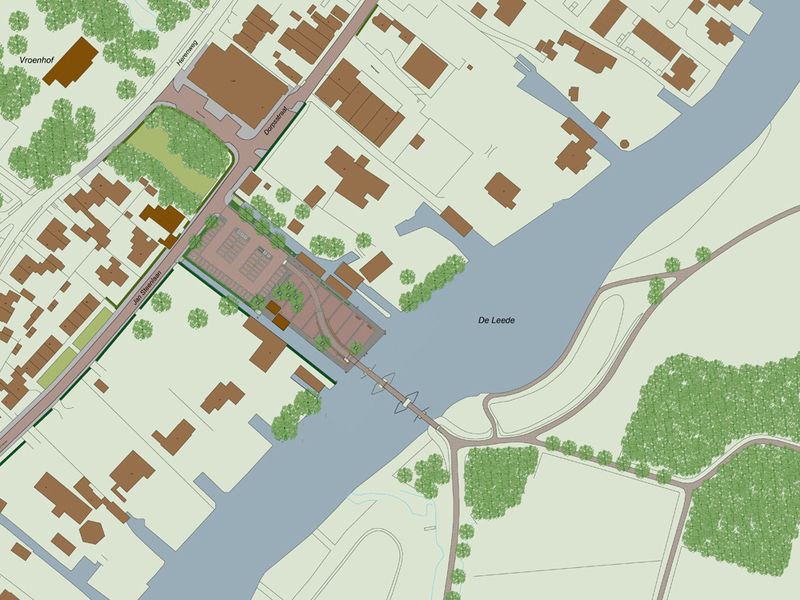 De Gemeentehaven ligt aan de dorpsstraat op de grens van de dorpskern en het open landschap. Deze bijzondere ligging vormt het uitgangspunt voor de herinrichting van de Gemeentehaven. Aan de dorpszijde wordt een parkeerplein aangelegd. Het plein is zo ontworpen dat het ook gebruikt kan worden voor markten en evenementen. Aan de waterzijde ligt een -autovrij- verblijfsplein, waar je prachtig uitzicht hebt over het water en het landschap. Losse bomen en een bomengroep onderbreken de open ruimte en sluiten aan bij het lommerrijke karakter van de omgeving. De zichtlijn vanuit landhuis Vroenhof wordt vrijgehouden. Hierdoor ontstaat er een zichtrelatie tussen het plein en het landhuis.