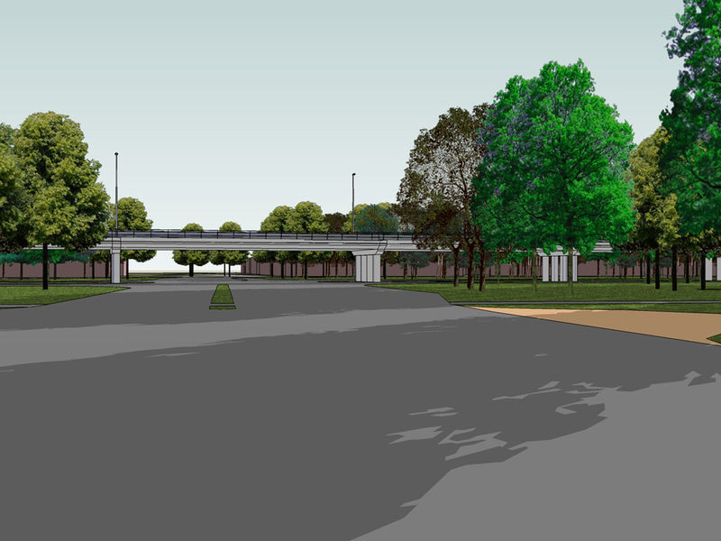 Parkway Centrum (rood) is het stedelijk deel en wordt uitgevoerd als fly-over. De weg wordt begeleid door losgeplaatste clumbs van eiken, aangevuld met lindes en kastanjes. Water onder de fly-over versterkt door weerkaatsing van licht het open karakter, terwijl het tevens voorziet in waterberging.