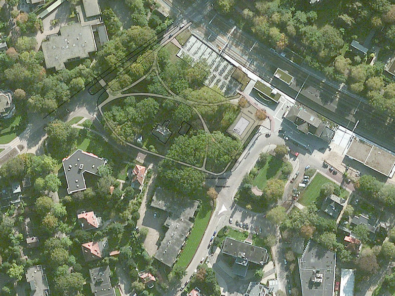 Het nieuwe paviljoen wordt aan het stationsplein gesitueerd met aan de zuidzijde een buitenterras met uitzicht op de aankomende en vertrekkende treinen. Aan de noord en oostzijde grenst het paviljoen aan het Amaliapark. Een nieuw padenstelsel verbindt het park met de omgeving.