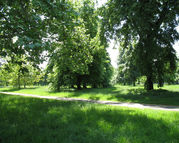 Landschappelijk is het centrum open en overzichtelijk (gras met monumentale parkbomen). Dit parklandschap gaat aan de noordoostzijde over in een natuurlijke open