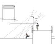 Na een uitgebreide schaduw analyse van het plein hebben wij een zo simpel mogelijke oplossing proberen te vinden. Waarbij er zowel schaduw op de brug is als zicht vanaf de brug over het plein. Het resultaat is een zonnewand tussen een deel van de leuningen van de brug en voor de zon tussen 12 en 2 uur twee zonneschermen (optioneel) achter te tribune op de brug.