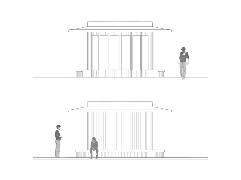 (ontwerp paviljoen en schaduwschermen)