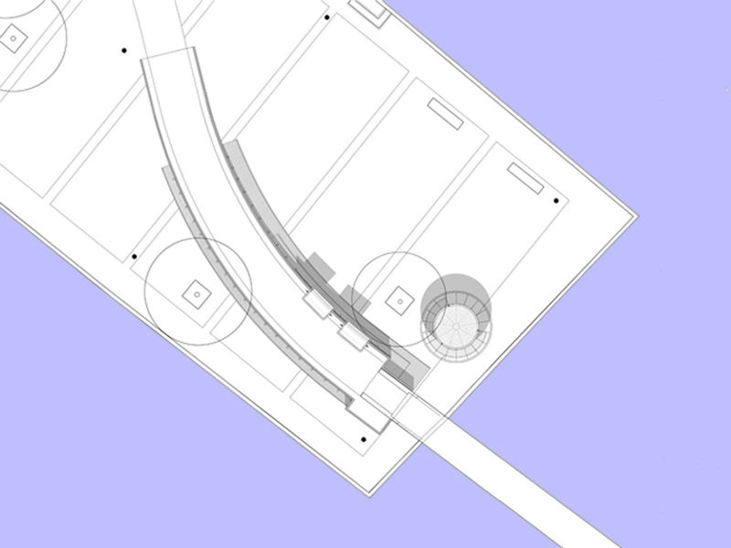 Daarnaast hebben wij ook een voorstel gemaakt voor het vervangen van de cabine van de rondvaartboten. Het is een rond paviljoen (met rondom een bank) van hetzelfde materiaal als de brug (hout). Op de bank rondom het paviljoen zijn er op elk moment van de dag zitplaatsen in de zon of in de schaduw. Het paviljoen is in de oksel van de brug geplaatst hierdoor blijft het zicht over het water behouden en wordt het paviljoen ruimtelijk een onderdeel van de brug.
