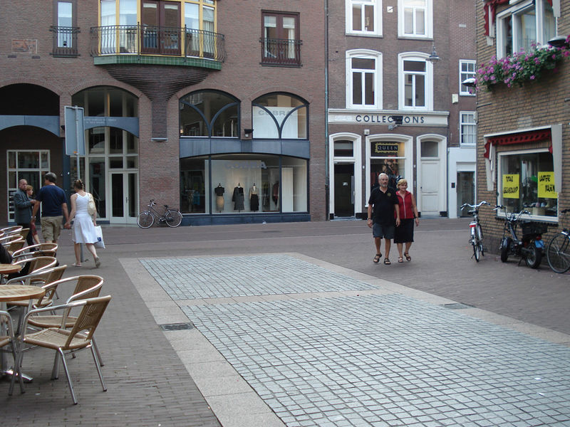 De rode gebakken klinkers vormen de basis van de inrichting. De lopers zijn ingevuld met grijze granietkeitjes in blokverband, omzoomd door rode graniettegels. De ‘tapijten' voor Stadhuis en het Stadskantoor hebben een visgraatpatroon gevormd door afwisselende rijen van gezaagde en gebrande keitjes. Op de knikpunten van de visgraten zijn grondspots aangebracht. De overige verlichting is uitgevoerd met armaturen die hangen aan over de straat gespannen kabels.
