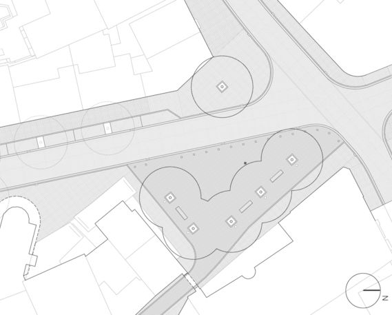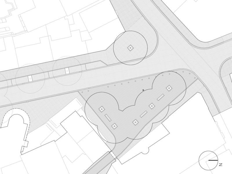 Het ontwerp beoogt de realisatie van meer ruimtelijke gelijkwaardigheid tussen de doorbraak en het oude stratenpatroon. Daarnaast wordt de verblijfskwaliteit van het hoekplein met zijn volgroeide platanen verbeterd door het plaatsen van comfortabele banken tussen en onder de bomen. Het plein is -aansluitend op het reeds aanwezige bestratingsmateriaal- bestraat met Zweedse granietkeien.