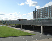 Het voorterrein van het hotel heeft twee niveaus. Op de begane grond kan worden geparkeerd, daarboven is in de vorm van een dek een tweede niveau geplaatst. Hier is eveneens ruimte om te parkeren en ligt de centrale entree van het hotel. Het dek staat los van het gebouw, de entree wordt door middel van een brug bereikt.