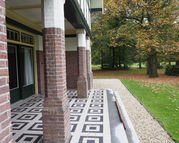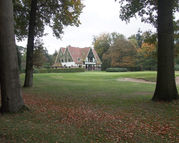 De voormalige boerderij van het landgoed, nu een woonhuis, wordt door een gemaaide tuin-as verbonden met de rhododendrontuin. Het tuingedeelte tussen de boerderij en het naastgelegen koetshuis, waarin kantoren zijn gevestigd, is ingericht met haagblokken, opgaande kersen, paden van gebakken klinkers en grind. Dit gedeelte van de tuin dient als pauzeplek voor de gebruikers van de kantoren. daarnaast bieden de hagen de bewoners van de voormalige boerderij privacy.