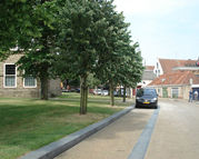 Voor de bestrating is gekozen voor een gele straatbaksteen. De stenen kleuren prachtig bij de kloostermoppen van de kerk en de stinzen. Hierdoor komen deze monumentale gebouwen na de herinrichting van de openbare ruimte optimaal tot hun recht.